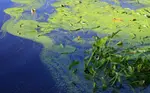 Toxic blue-green algae, or Cyanobacteria, can bloom in ponds when the weather has been hot and humid and the water is stagnant. Blue-green algae can grow in both fresh and brackish water. This toxic algae is difficult to distinguish from common, non-toxic algae without a microscope and an expert.